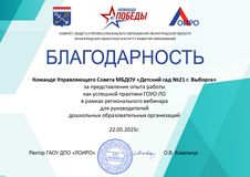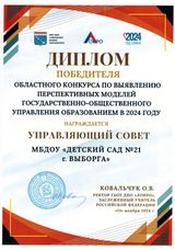 На протяжении нескольких лет управляющий совет МБДОУ «Детский сад№21 г.Выборга» успешно развивается. В 2024г мы стали победителями Областного конкурса по выявлению перспективных моделей государственно- общественного управления образованием в номинации "Лучший управляющий совет дошкольной образовательной организации". Мы представляем свой опыт на разных площадках и делимся нашими идеями и успешными практиками на страницах нашего сайта. Управляющий совет - это возможность для родителей, педагогов, общественности, принимать активное участие в развитии своего учреждения, в решении актуальных задач.